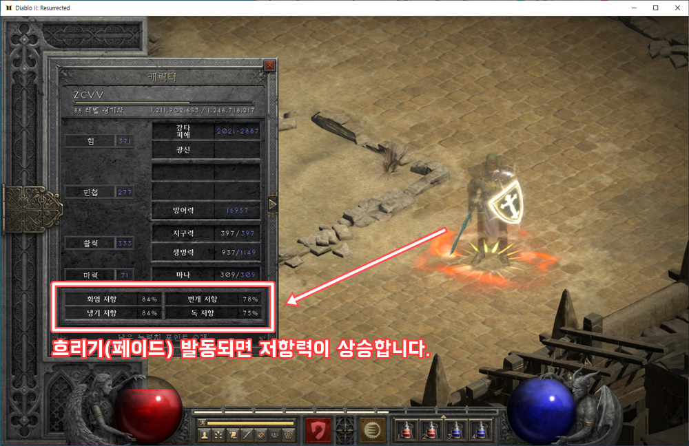 흐리기가 적용되면 캐릭터의 모습이 반투명해지고 모든 저항력이 크게 상승합니다